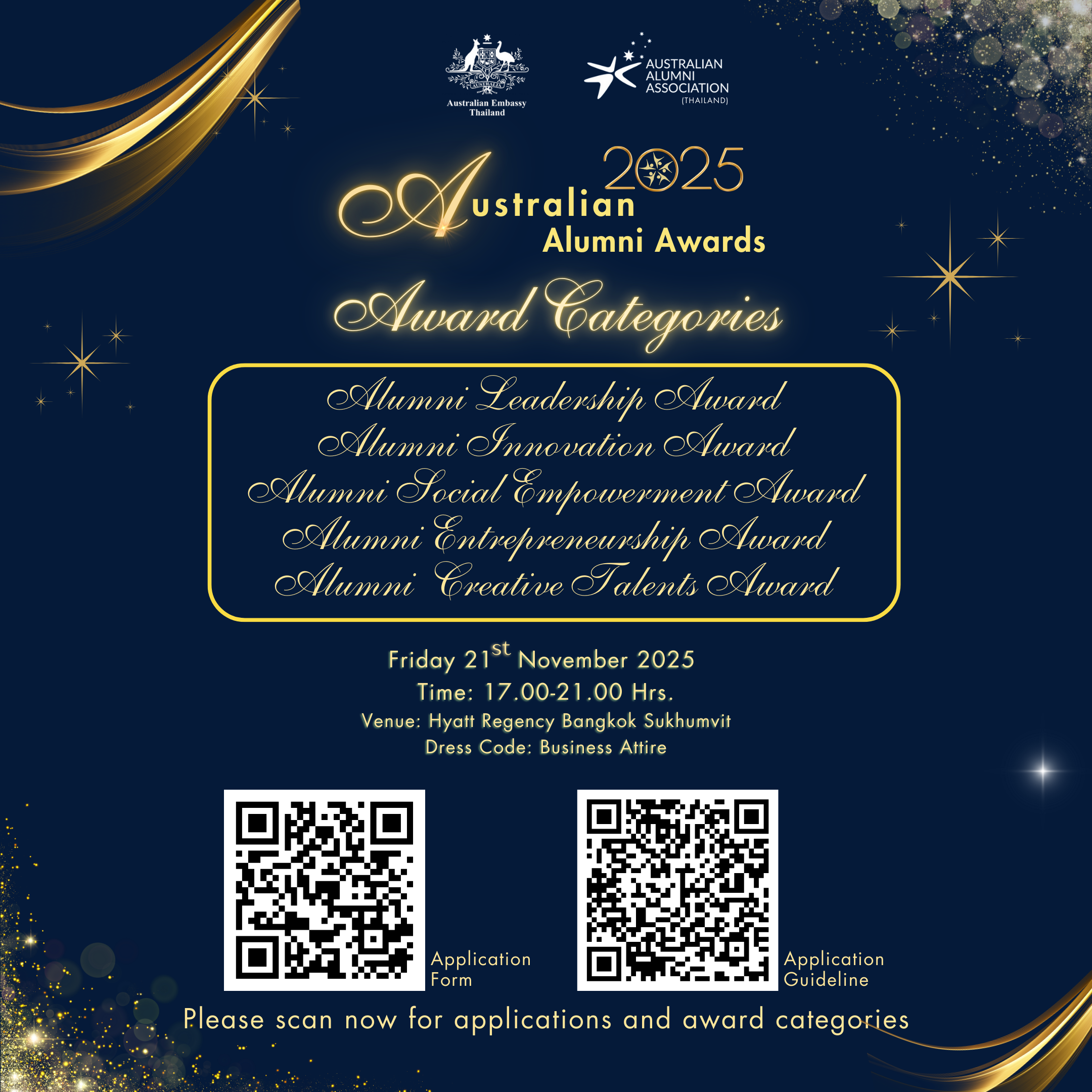 Since 2016, admission to AAA Thailand events have been free of charge. However, the AAA Thailand Committee reserves the right to charge nominal fees for certain events from July 2020 onwards. For events organised by the Australian Embassy, AAA Thailand will submit names of alumni members to the embassy on a rotation basis. However, the final decision as to which alumni are invited rests with the Australian Embassy.