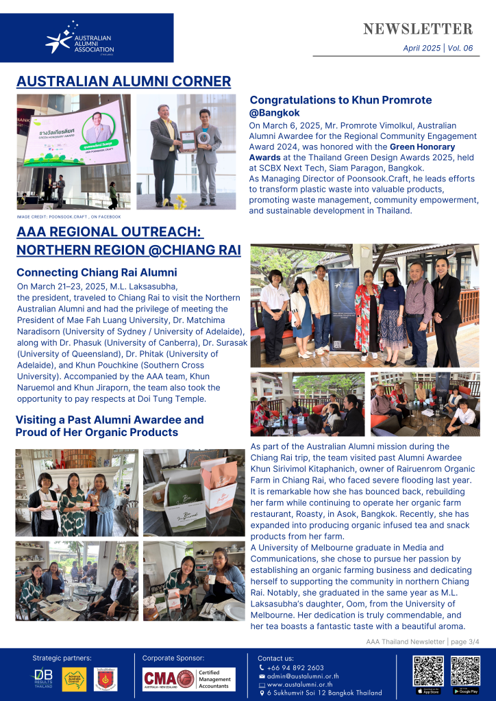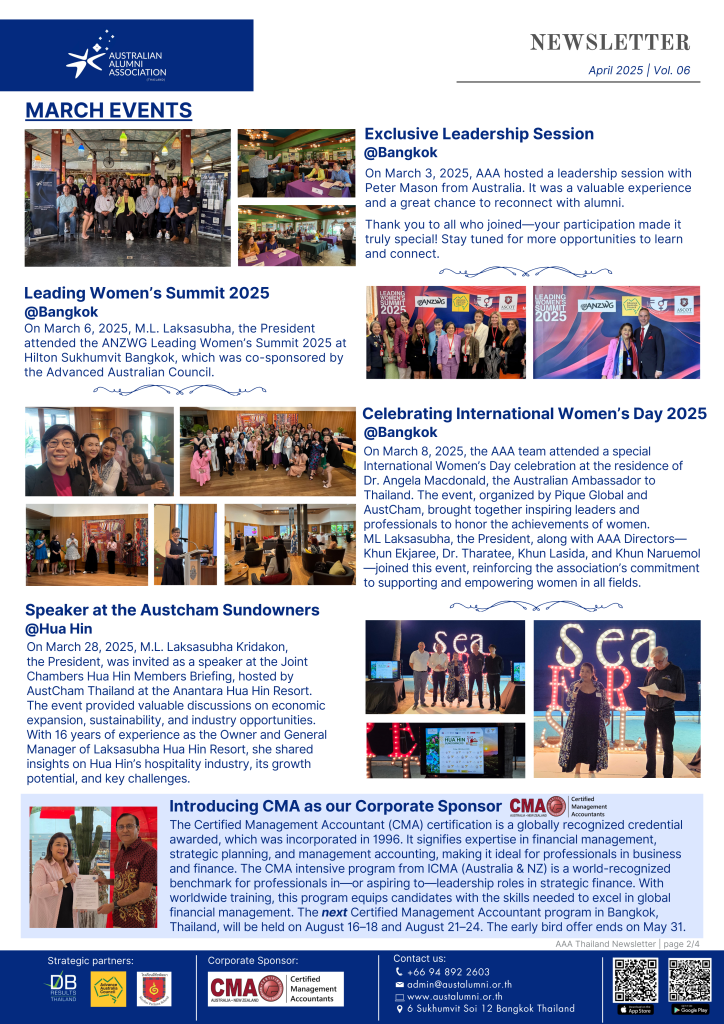 Since 2016, admission to AAA Thailand events have been free of charge. However, the AAA Thailand Committee reserves the right to charge nominal fees for certain events from July 2020 onwards. For events organised by the Australian Embassy, AAA Thailand will submit names of alumni members to the embassy on a rotation basis. However, the final decision as to which alumni are invited rests with the Australian Embassy.