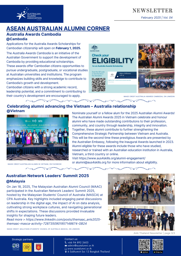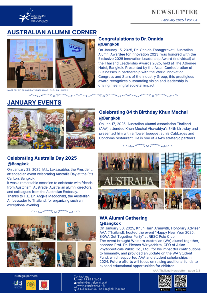 Since 2016, admission to AAA Thailand events have been free of charge. However, the AAA Thailand Committee reserves the right to charge nominal fees for certain events from July 2020 onwards. For events organised by the Australian Embassy, AAA Thailand will submit names of alumni members to the embassy on a rotation basis. However, the final decision as to which alumni are invited rests with the Australian Embassy.