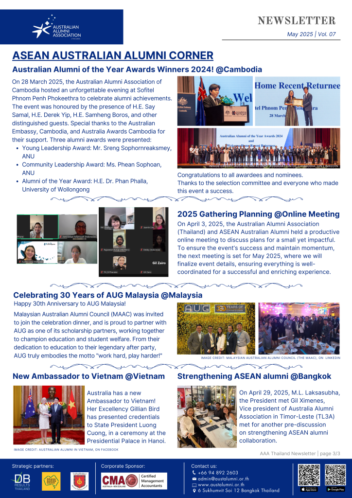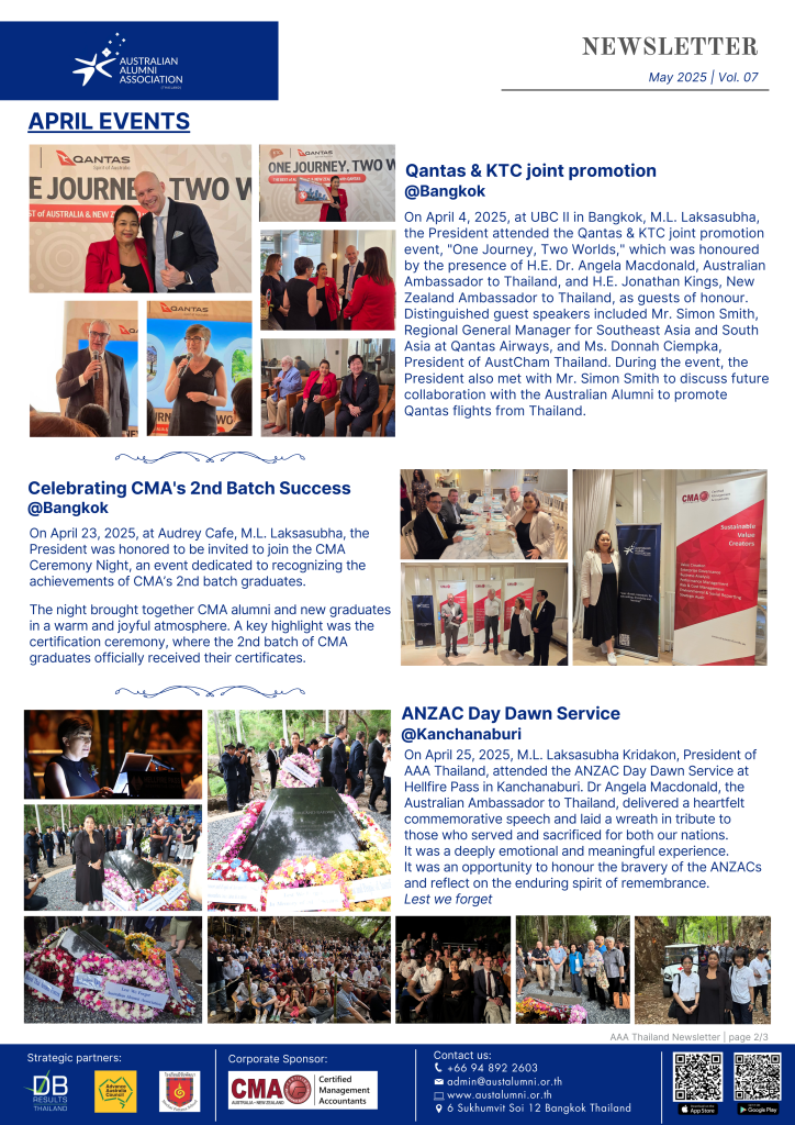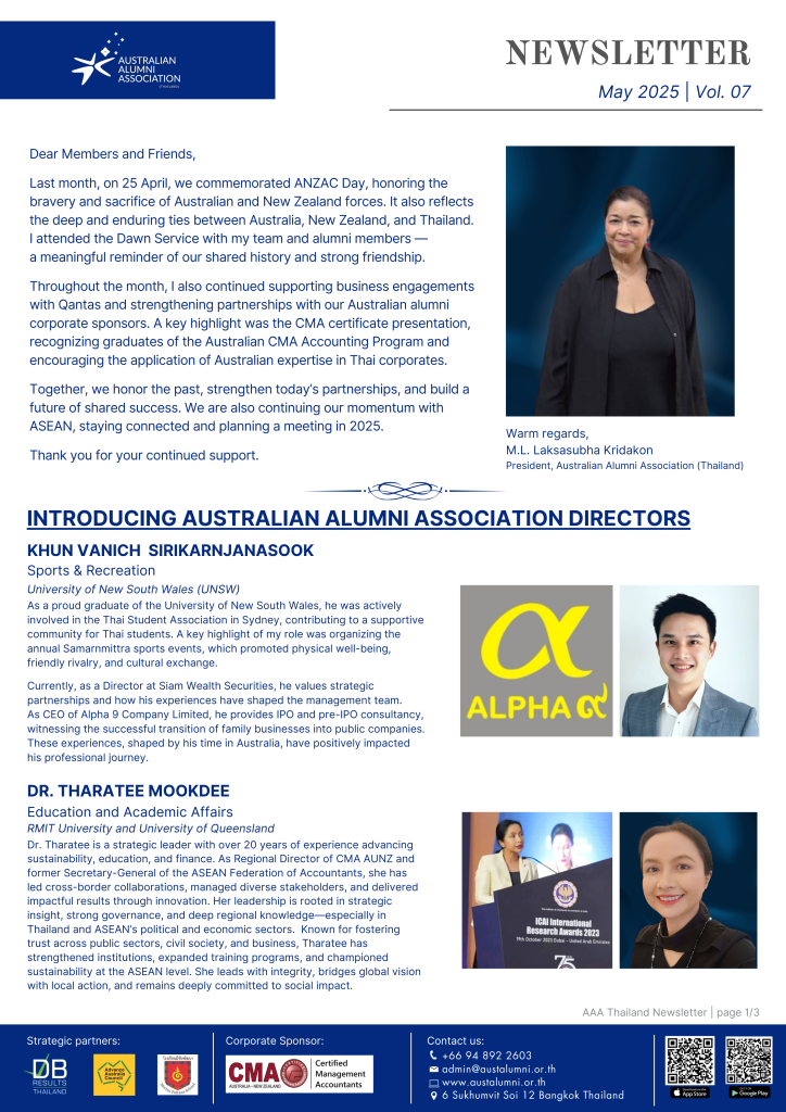 Since 2016, admission to AAA Thailand events have been free of charge. However, the AAA Thailand Committee reserves the right to charge nominal fees for certain events from July 2020 onwards. For events organised by the Australian Embassy, AAA Thailand will submit names of alumni members to the embassy on a rotation basis. However, the final decision as to which alumni are invited rests with the Australian Embassy.